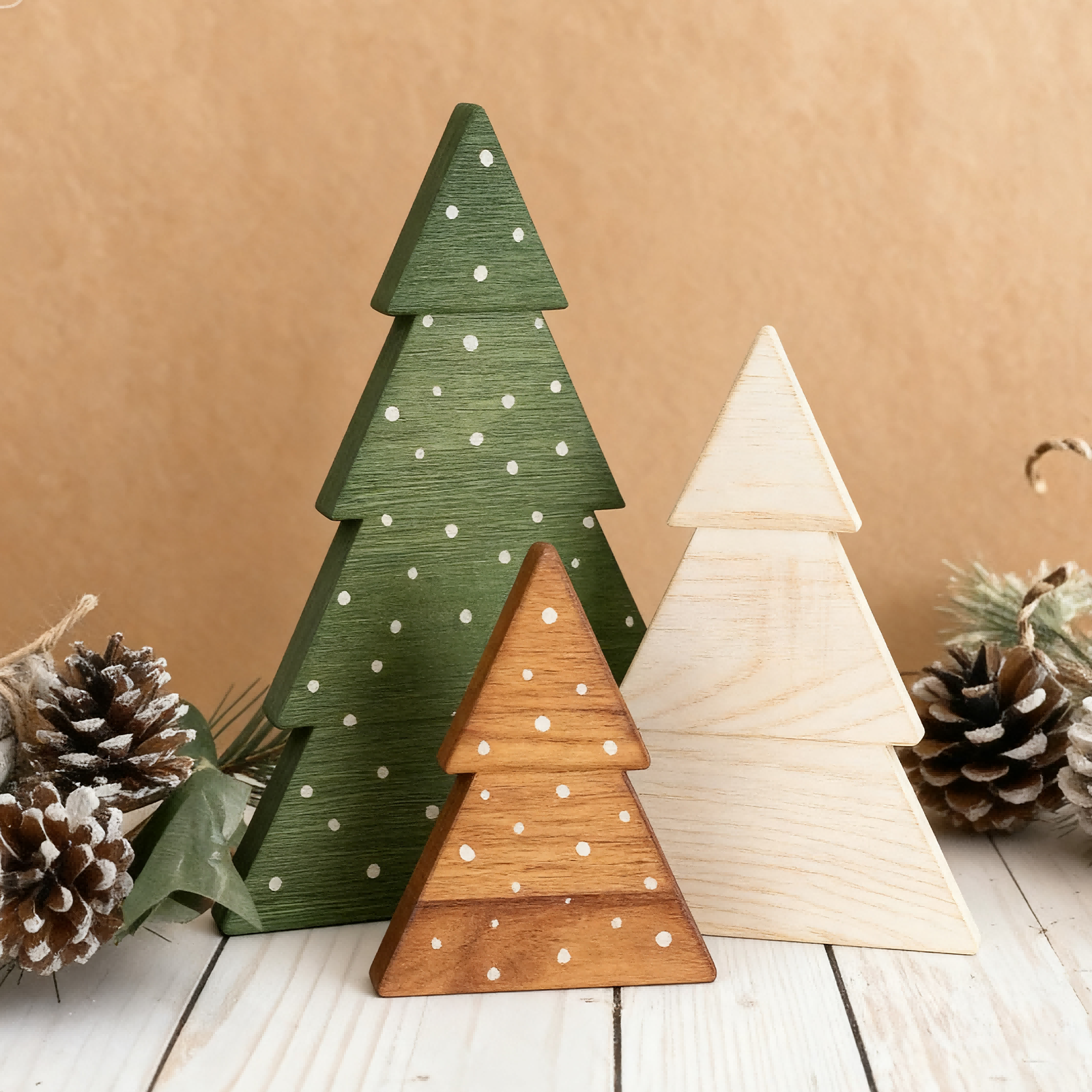 Rustic Wooden Christmas Trees – Handcrafted from premium natural wood with smooth finishes and visible grain. Eco-friendly, durable, and reusable holiday decor pieces.